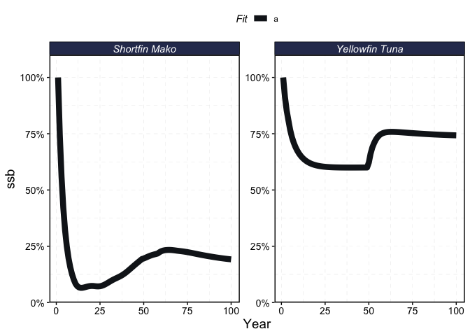 fleets <- tune_fleets(fauna, fleets, tune_type = tune_type, tune_costs = TRUE,years = floor(years * .5)) # tunes the catchability by fleet to achieve target depletion