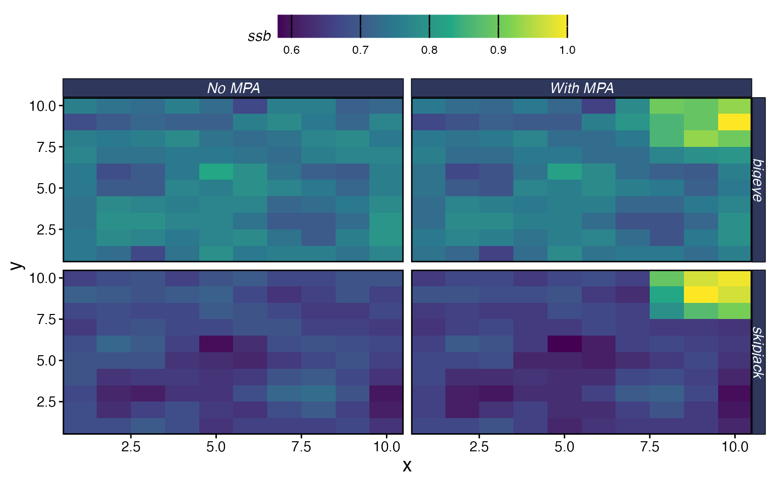 plot_marlin(proc_multi, plot_var = "ssb", plot_type = "space",